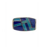 - 3025 RICHARD BECENTI NAVAJO 14K YELLOW GOLD & STERLING SILVER TURQUOISE CUFF