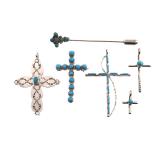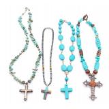 - 3602 4PC SOUTHWESTERN GEMSTONE CROSS PENDANT NECKLACES