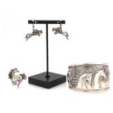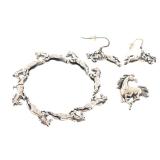 - 3528 4PC KABANA STERLING SILVER HORSE BRACELET, BROOCH & EARRINGS