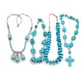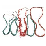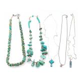 - 3566 4PC SOUTHWESTERN STERLING SILVER & NICKEL SILVER TURQUOISE GEMSTONE NECKLACES