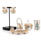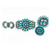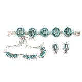 - 3569 4PC NATIVE AMERICAN STERLING SILVER PETITE POINT TURQUOISE JEWELRY