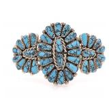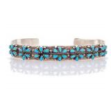 - 3588 VINTAGE MN ZUNI STERLING SILVER TURQUOISE FLORAL CUFF