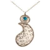 - 3558 SIGNED NATIVE AMERICAN STERLING SILVER TURQUOISE PENDANT