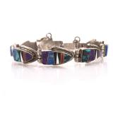 - 3014 DOROTHY SECATERO NAVAJO STERLING SILVER INLAY CUFF