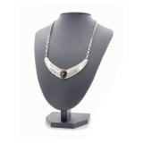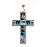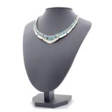 - 3541 LEAGUS AHIYITE ZUNI STERLING SILVER INLAY NECKLACE