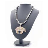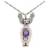 - 3515 DERRICK GORDON NAVAJO STERLING SILVER AMETHYST FETISH BEAR PENDANT NECKLACE