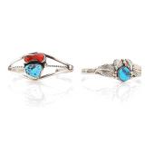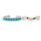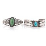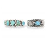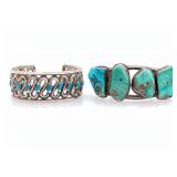 - 3609 2PC NATIVE AMERICAN STERLING SILVER TURQUOISE CUFFS