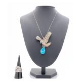 - 3587 VERA HALUSEWA ZUNI STERLING SILVER TURQUOISE BROOCH PENDANT NECKLACE & EARRINGS