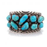 - 3023 PETE MORGAN NAVAJO STERLING SILVER TURQUOISE NUGGET CUFF