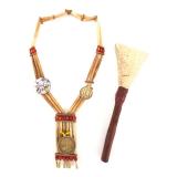 - 3024 VINTAGE NATIVE AMERICAN CARVED BONE KACHINA FETISH NECKLACE WITH SQUAW WRAP