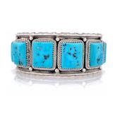 - 3519 WET NATIVE AMERICAN STERLING SILVER TURQUOISE CUFF