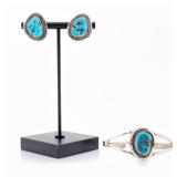 - 3516 GARRISON BOYD NAVAJO STERLING SILVER TURQUOISE CUFF & EARRINGS
