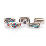 - 3546 5PC NATIVE AMERICAN ASSORTED STERLING SILVER LOT