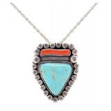 - 3529 SOUTHWESTERN STERLING SILVER ROYSTON TURQUOISE NOBLE CORAL BROOCH PENDANT NECKLACE