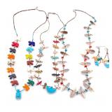 - 3532 4PC NATIVE AMERICAN MULTI STONE FETISH NECKLACE & EARRINGS