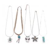 - 3537 5PC ASSORTED NATIVE AMERICAN STERLING SILVER NECKLACES