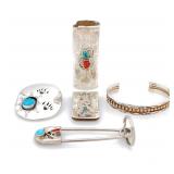 - 3530 4PC ASSORTED NATIVE AMERICAN STERLING SILVER JEWELRY LOT