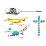 - 3548 4PC ASSORTED NATIVE AMERICAN STERLING SILVER TURQUOISE BROOCHES PIN