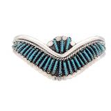 - 3557 YAZZIE JOHNSON NAVAJO STERLING SILVER NEEDLEPOINT TURQUOISE CUFF