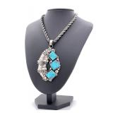 - 3590 5PC SOUTHWEST NATIVE AMERICAN STERLING SILVER TURQUOISE NECKLACE
