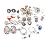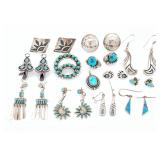 - 3606 10 PAIR OF NATIVE AMERICAN/SOUTHWEST STERLING SILVER EARRINGS