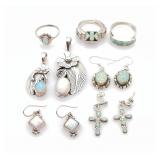 - 3571 11PC NATIVE AMERICAN/SOUTHWEST STERLING SILVER OPAL JEWELRY LOT