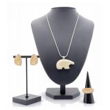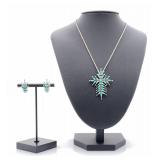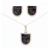 - 3573 3PC JIM HARRISON NAVAJO STERLING SILVER INLAY PENDANT NECKLACE & EARRINGS