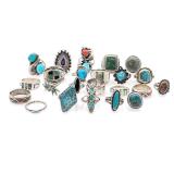 - 3574 23PC NATIVE AMERICAN/SOUTHWEST STERLING SILVER GEMSTONE RINGS