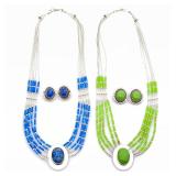 - 3575 4PC NATIVE AMERICAN STERLING SILVER LAPIS & TURQUOISE NECKLACES & EARRINGS