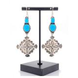 - 3549 PETER VAJDA SOUTHWEST STERLING SILVER TURQUOISE EARRINGS