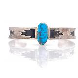 - 3584 T NATIVE AMERICAN STERLING SILVER TURQUOISE CUFF