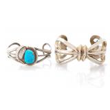 - 3604 2PC NATIVE AMERICAN STERLING SILVER TURQUOISE CUFFS