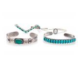 - 3598 4PC NATIVE AMERICAN STERLING SILVER TURQUOISE & OPAL CUFFS