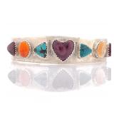 - 3600 LOUIS MONTOYA ZUNI STERLING SILVER GEMSTONE HEART CUFF