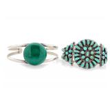 - 3608 2PC NATIVE AMERICAN STERLING SILVER TURQUOISE & MALACHITE CUFFS