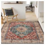 VALENRUG 8'x10' Stain Resistant Vintage Tribal Lightweight Washable Anti-Skid Area Rug - Orange/Red