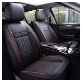 AIERXUAN 5-Piece Car Seat Covers Full Set with Waterproof Leather Airbag Compatible Automotive Vehicle Cushion Cover Universal fit for Most Cars - Black & Red