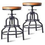DIWHY 2-Pack 27 in. Industrial Vintage Swivel Metal Wood Fully Welded Kitchen Counter Height Adjustable Screw Stools with Wooden Top