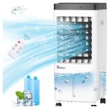 - 🧊【3-IN-1 PORTABLE AIR CONDITIONERS】With 3 kinds of cooling processes (air, water, and ice), this portable swamp cooler can be used as a fan, humidifier and a cooler, providing a versatile and efficient solution to meet your different needs. The cool and the fan mode can be used together or alone to reduce the temperature, circulate the air or maintain the optimal level of moisture in the air. Turning on the portable air conditioner to bring you a cooling summer.