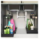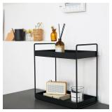 KINGBERWI 2-Tier Bathroom Countertop Organizer Cosmetic Storage Shelf Kitchen Spice Rack - Black