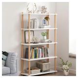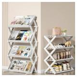 IOTXY 5-Tier Modern Open Bookshelf, Free Standing Storage Rack, Multifunctional Display Stand for Home and Office - White Rectangle
