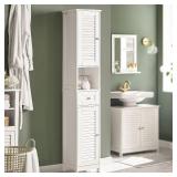 HAOTIAN White Floor Standing Tall Bathroom Storage Cabinet with Shelves and Drawers, Linen Tower Bath Cabinet, Cabinet with Shelf