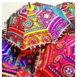 UNITED CREATION 5-Pack 24 in. Indian Vintage Cotton Umbrellas Wedding Decoration Vintage Embroidered Multicolor Bohemian Parasol Umbrellas