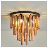MOUJOE 5-Light Semi Flush Mount Ceiling Light Fixture Rustic Wooden Chandelier Retro Ceiling lamp Oak and Black with E26 for Farmhouse