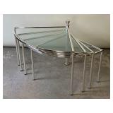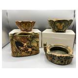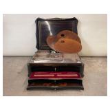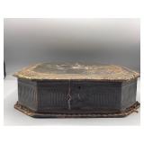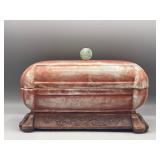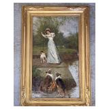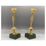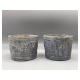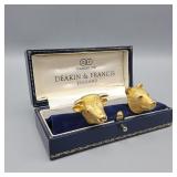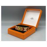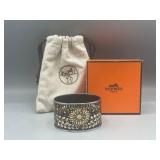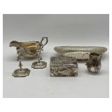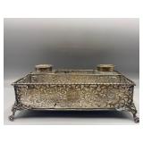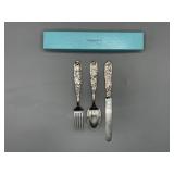 1 Albert Cole Two-Piece Coin Silver Fish Service An Albert Cole, New York, coin silver fish slice and serving fork, circa mid-19th C. Each with an engraved design, twisted shaft and Roman soldier portrait medallion handle. Both marked. Slice: 11-1/2in long. 6.9 ozt total. | $200-400 2 Tiffany & Co. Sterling Asparagus Tongs A set of Tiffany & Co. sterling silver asparagus tongs in the Saint Dunstan pattern. Monogramed. Approx. 8in long. 6.75 ozt. | $100-300 3 Three Sterling Silver Napkin Rings A grouping of three sterling silver napkin rings to include a Gorham Noah and the Ark, a Georg Jensen, and a Simons brothers sterling with Hey Diddle Diddle nursery rhyme motifs. Noah and the Ark: 1-1/2in x 2in diameter. 4 ozt total. | $100-200 4 Austria Hungary Oval Silver Tray An Austria-Hungary oval silver tray having a pierced edge and central armorial crest with ribbon marked 1881/ 20. September / 1906. Diana head hallmark. 20-3/4 in wide x 17 in tall. Approx. 43.75 ozt. $500-700. 5 Austria Hungary Oval Silver Tray An Austria-Hungary oval silver tray having a raised leaf decorated border and central engraved crest. Various hallmarks to include Diana head. 12-1/4 in tall x 20-1/2 in wide. Approx. 42.9 ozt. $500-700 6 Austrian Silver Rectangular Tray An Austrian silver rectangular tray having a reeded and scalloped edge and engraved crest. Toucan hallmark in addition to others. Marked 800. 9-1/4 in tall x 15-3/4 in wide. Approx. 29.8 ozt. $300-500. 7 Two Austrian Silver Ladles Two 19th Century Austrian silver ladles, each having hallmarked handles. Larger: 14 in long. Approx. 13.3 total troy ounces. $200-400. 8 Group of Silver Table Articles A group of silver table articles to include an Ensko, NY 950 silver gravy boat, a pair of Cartier marked miniature sterling candlesticks, a Wallace sterling scalloped dish, an Ensko sterling cream pitcher, and a sterling silver cigarette box. Gravy: 3-1/2 in tall x 7-1/2 in wide. Sterling articles excluding the box weight 18.05 ozt. The gravy weighs 10.68 ozt. $400-600. 9 Gorham Sterling Three Piece Coffee Set A Gorham sterling silver three piece tea service comprised of a coffee pot, cream pitcher, and covered sugar. Each piece is marked. Coffee pot: 10-1/2 in tall x 10 in wide. Approx. 31 total troy ounces. $500-700. 10 George III Sterling Inkwell Desk Set A George III Philip Norman sterling silver filigree footed desk set with two cut-crystal inkwells. Dated 1770; hallmarks on bottom. 3in tall x 9in wide. 21.96ozt. Break to filigree. | $300-500 11 Three Pcs. Tiffany Co. Nursery Rhyme Silver Three pieces of Tiffany & Co. sterling silver repoussé Nursery rhyme flatware to include a Red Riding Hood knife, a Little Bo Peep fork, and a Jack & Jill spoon. Each marked "Tiffany & Co. Sterling". Includes original presentation box. Knife: 8in long. Fork: 6-3/4in long. Spoon: 6-1/2in long. 5.74ozt total. | $200-400 12 Two Mappin Bros. Silver Art Nouveau Vases Two Mappin Brothers Sheffield sterling silver Art Nouveau reticulated vases with blue and green colored glass inserts. Circa 1923; hallmarks on base. 7-1/2in tall x 3-1/2in wide. 9.75 ozt. | $100-300 13 Silver Putti-Decorated Kiddish Cup A silver Kiddish cup with repoussé detail and central Putti head, resting on ball feet. Chalice hallmark on rim. 4in tall x 3in wide. | $100-200 14 Gorham Classique Sterling Silver Flatware Service A Gorham Classique mid century modern sterling silver flatware service, comprised of 66 pieces. Approx. 68.2 troy ounces excluding 18 sterling handled knives. $1000-1500. 15 Winterthur Paul Revere Sterling Tankard A Reed and Barton Winterthur Reproduction Paul Revere sterling silver tankard. Limited to an edition of 1000. 8 in tall x 6-1/2 in wide. 21.5 troy ounces. $500-700 16 Fortis B-42 Automatic Day Date Watch A Fortis B-42 Automatic Day / Date watch ref. 655.10.158. Having a 42mm case and additional bracelet. Currently in running order. Some wear to case. $400-600. 17 Semiprecious Stone Bracelet A hinged link bracelet with six various shaped rectangular semiprecious stones. Unmarked. Approx. 2-1/2in diameter. Some repairs and breaks to the links. | $100-300 18 Diamond Masonic Ring and Pendant Grouping to include a 10K yellow gold and diamond Masonic ring and an unmarked Masonic pendant. Pendant does not test as gold. Ring size 10. Ring weight: 6.4dwt. | $100-300 19 Four-Piece Cameo and Portrait Jewelry Grouping Grouping to include two neoclassical cameo brooch pendants, a child's cameo ring, and a miniature porcelain portrait brooch. Ring size: 1-3/4. Round cameo brooch: 1-1/2in diameter. | $100-300 20 Rolex Oyster Perpetual 14K Gold Wristwatch A Rolex Oyster Perpetual 14K yellow gold wristwatch, model 6084, circa 1950s, with a 34mm case excluding Super Oyster Rolex crown with a white dial and dart indexes. Self winding movement marked 29241. On an aftermarket leather strap and buckle. Current in running order. Not checked for accuracy. | $1500-2500 21 Hermès Palladium Enamel Bracelet An Hermès Paris extra wide palladium and plated black enamel bracelet with floral motif. Marked Hermès Paris inside bracelet. Includes original dust bag and Hermès Paris orange box. Bracelet: 3in diameter. | $200-400 22 Hermes Oxblood Kyoto Cuff Bracelet An Hermes Paris oxblood leather Kyoto cuff bracelet having 18k gold plated brass. Includes original orange Hermes box. 3 in wide. | $200-300. 23 Hermes Enamel Printed Bracelet An Hermes Paris enamel bracelet having printed belt motif. Marked Hermes Paris, Made in France + Q. includes Hermes orange box. Bracelet: 2-1/2 in wide. | $100-200. 24 Hermes Enamel Soleil Bracelet An Hermes Paris enameled soliel motif bracelet having the sun and stars motif. Marked Hermes Paris on the interior. Includes Hermes orange lidded box. Bracelet: 2-1/2 in wide. | $100-300. 25 Attrb. Diquis, Costa Rica Gold Avian Pendant Attributed Diquis, Costa Rica gold avian pendant, possibly 800-1200 AD. High gold content tumbaga. 3-1/2 in x 3-7/8. 51.8 dwt. $2000-4000. 26 C