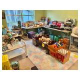 Includes: Churchill Wildlife Dinnerware Series (Perfect for Thanksgiving) Christmas Décor Extensive collection of Calico Burleigh Staffordshire Dinnerware in cobalt blue and dark green Vintage Vinyl Albums-including Jimmy Buffett, Big Brother & The Holding Company, James Taylor, Carol King, Deep Purple, Boston, Three Dog Night, CNSY, The Doors, Buffalo Springfield, The Kinks, Moody Blues and many more great artists from the 60s and 70s Davenport Burleigh Ivyvines Dinnerware Spode Christmas Dinnerware Villeroy & Boch Amapola Dinnerware Waterford Antique Lusty Maidsaver Cabinet Cat figurine collection Large selection of outdoor patio items, including furniture Signed Artist Proof by Nancy Lubeck Large collection of James Sadler Teapots Large book collection Several Jim Shore Figures Several Willow Tree Figures Antique wooden 1930s desk chair Large collection of Elfa closet shelving (you must remove) Elfa free standing shelving Drexel King 4 poster bed frame (2) Drexel Nightstands Drexel Highboy Venetian Shell Chair New in box Singer Fashion Mate Sewing Machine $125 Large selection of toddler boy clothing Size Newborn-3T Nice selection of toddler toys Will Moses signed print Several pieces by C. Winterle Olson, including an original watercolor Antique desk Antique buffet with mirror Antique desk curio Waterford Lamp Ashley River Server Krups Ice Cream Maker Ninja Mega Kitchen System NIB Hamilton Beach Chef Prep NIB Ambiano Turbo Convection Oven Broyhill China Cabinet Sligh Wall Clock (sounds beautiful!) Jog stroller Tools Plastic storage bins Large selection of games Brighton jewelry Brighton purses Vera Bradley Coach pet ramp Vintage Little House on the Prairie 9 Book Set-1971 (1) Carved Bear made of a log Vintage Seth Thomas Mantle Clock …and much more! Come see us!