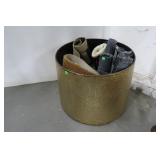 Metal Tub of Miscellaneous, Christmas Lights, Small Rugs, Rubber Material