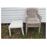 3 Plastic Patio Chairs and Side Table