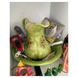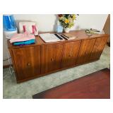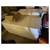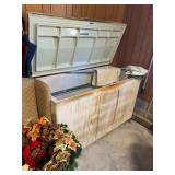 FULL HOUSE AND WORKSHOP !! Glass curio, table / 6 chairs, hutch, kitchen items / small appliances and dishes / flatware, hall tree, area rugs, upholstered chairs, sofa, framed prints, mid century stereo console (works !), wingback chair, bar stools, leaded glass lamps, antique glass butter churn, pyrex, vintage mushroom ceramic cannister set, flat screen TV's, refrigerator, upright freezer, desk, printer, file cabinets, men's and women's clothes, towels / linens, dressers, end tables, beds, vintage cane chairs, jewelry chest, vacuum, loveseat, mid century Lane hope chest, antique tea cart, Pride lift chairs (2), coffee / end table set, wicker chairs / loveseat, bookcases, outdoor cement decor and birdbath, wood swing, wood bench, rocker and chair, 15' boat / trailer (engine needs repair), hand, power and yard tools, vise, bench grinders, Fastrak zero turn mower, compressor, tool chest, boat anchors, pressure washer, coolers, tiller, Cub Cadet riding mower, Lincoln arc welder, metal nail / bolts cubby, Viking shop press 6000, ladders, rods / reels, extension ladder, pump jack and MUCH MORE !! |