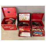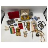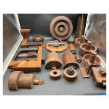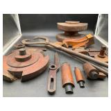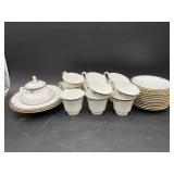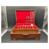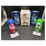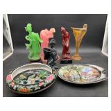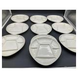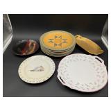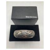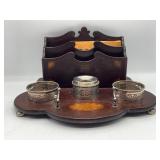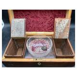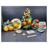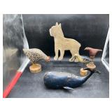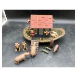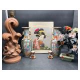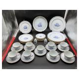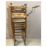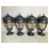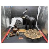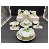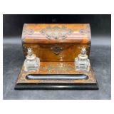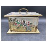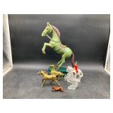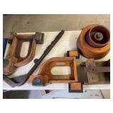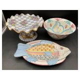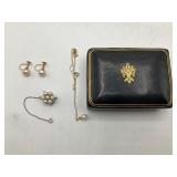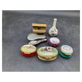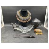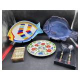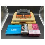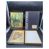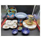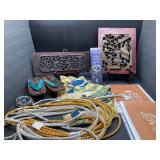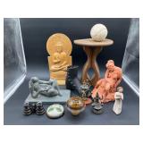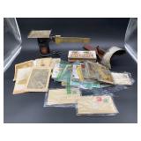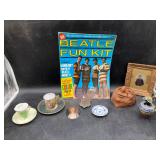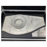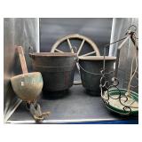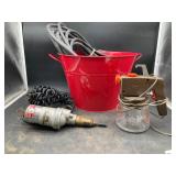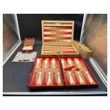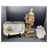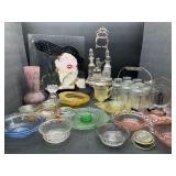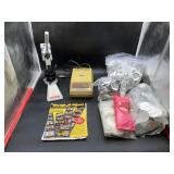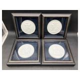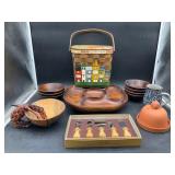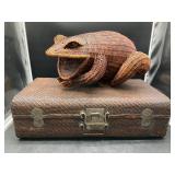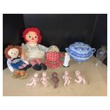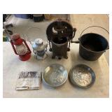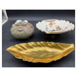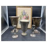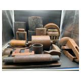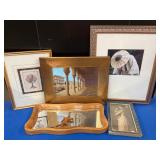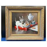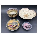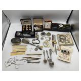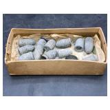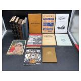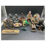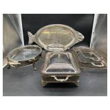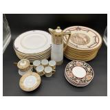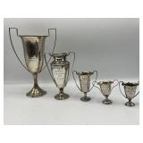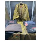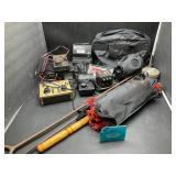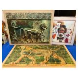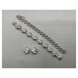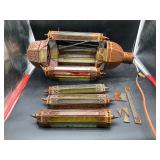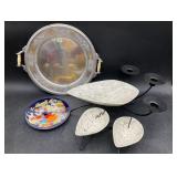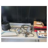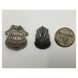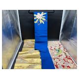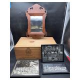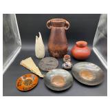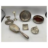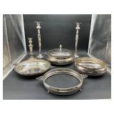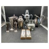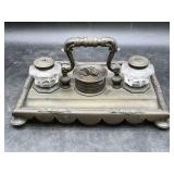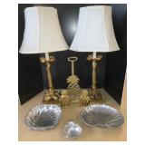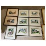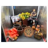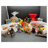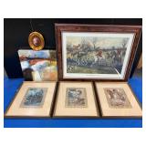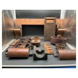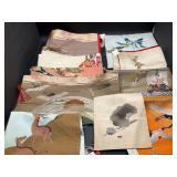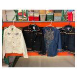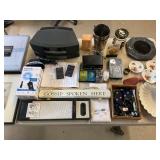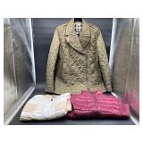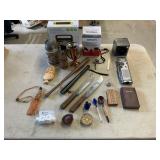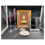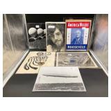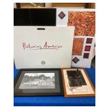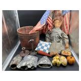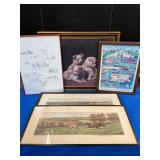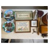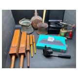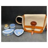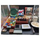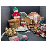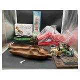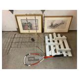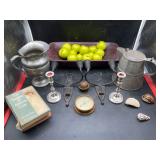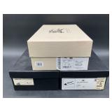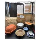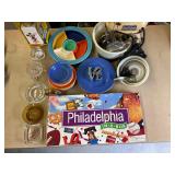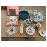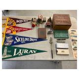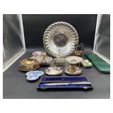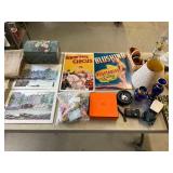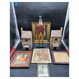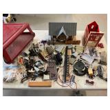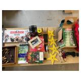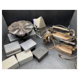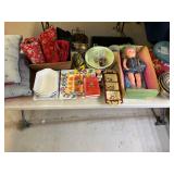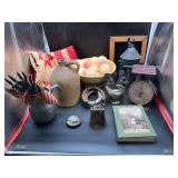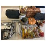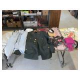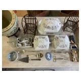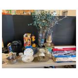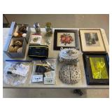 960 Alligator Handbags (R8) A pair of alligator handbags, circa 1950’s, one labeled, Made in Cuba. Strap on smaller bag needs repair. Zippers on larger bag not working. Larger bag 11” x 12.5” 961 Vintage Christmas (E12) A collection of electrified hurricane candle lamps , mercury glass ornaments, hand made paper ornaments, giant plastic Christmas balls, and many screw in bulbs for lights. 962 Statues and Friends (R14) A grouping of religious chalk ware statues, tallest 14”, (two need repair, pieces included for one to repair), carved Indigenous people wall planks, golden eagle bookends, and more 963 MCM HO Scale Model Town (R3) Made by Volmer, and Kubrick West Germany. Houses approximately 3” high. Very Cool! 964 Cobalt & Apothecary Glass (E14) To include a collection of three apothecary jars with lids (one lid, damaged), and a cobalt glass vessel marked “Sassparilla” 10.5” high. 965 Mid-Century Glass (E7) To include a black panther glass lamp,(10.5”) to novelty glass heads, and a stainless steel and wood sculpture. 966 Figurines (E10) A collection of five female figurines, all replicas in plastic, and a black ceramic kneeling woman Tallest 10”.. Also to include a 9” Asian centerpiece bowl and a signed dish depicting the Champs Elyese. 967 Silverplate, Pewter, Stainless Bar Group (R19) A grouping of bar related items, most notably a Sheffield circa 1940’s pewter pitcher, a stainless jigger, a glass line ice bucket marked Wallace. 968 Old English Melon Community Plate (E6) A beautiful silverplate Tea/Coffee service with composite handles. To include four matching pieces. (Some wear) 969 Made in England Tea Service (R14) Beautifully engraved silverplate tea/coffee service with Coffee, Tea, creamer, sugar and waste bowl. Tallest 10”. Monogrammed, composite handles. 970 Modern Silver Plate (R21) A grouping of silver plated serve ware to include two 16” round shallow bowls/platters, nesting Revere bowls from different makers (two marked Bailey Banks & Biddle), largest 10” diameter, a meat platter, and a divided dish. Just in time for the Holidays! 971 Williamsburg Steiff Pewter Teapot (E7) To include a Williamsburg reproduction pewter teapot with hinged lid and wood handle. 9” high. And a cut glass dispenser with silver plate handle and lid. 972 Silver Plate Trays and Friends (E3) A collection of 20th century silver plate to include two heavy 22” handled trays, fish & scalloped serving platters, a pretty handled basket and a baroque shaped tray. Some wear to all. 973 Pendleton Style Wool Blanket 72” x 88” 974 Burberry Brit Outerwear (Clothing Rack) Two pieces of Women Size M quilted hacking jacket and quilted vest from Burberry Brit line of clothing and a Moncler knit with down sweater jacket, size Women's small. 975 Cased Mantle Clock A marble and brass mantle clock with Roman details. 15” wide x 12.5” high. (Not tested) 976 Steuben Crystal Owl (BR Showcase) Signed Steuben crystal owl 5.5” tall. 977 Tiffany Crystal Globe (BR Showcase) Crystal world globe marked Tiffany & Co, measures 3” in diameter. 978 Baccarat Crystal Elephant (BR Showcase) A minimalist crystal elephant sculpture by Baccarat, measures 3” tall. 979 Steuben Crystal Paperweight (BR Showcase) Steuben crystal paperweight with spiral line work and teardrop inclusion, measures 3.5” tall. 980 Royal Doulton Princeton China (R21) Royal Doulton Princeton pattern China including 12 saucers, 11 teacups, 3 8” bowls, and sugar bowl. 981 Vintage Sidewalk Surfboard (E3) Vintage 1960’s Sidewalk Surfboard, the predecessor to the modern skateboard, measures 29” long. 982 Assorted Record Lot (E22) Unexamined Lot of 60+ records. 983 Vintage Toy Rifles (E22) Includes Winchester Saddle Gun by Mattel and toy bolt action rifle. 1001 Primitives & Halloween (E1) Primitive wooden bucket, four redware and terra cotta pots, Halloween bobble heads and pillows and more! 1002 Rabbits, Chicks & Dogs (R2) Decorative Easter and other rabbits, two are signed “Walnut Ridge” plus a concrete garden chick, a Decorative Easter chick and a Halloween dog 14” high. 1003 Log Cabins, Dogs & More! (R2) Two hand made decorative log style cabins each measures approximately 12.5” high, framed dog prints and photos, framed embroidery and more. 1004 New Fan, Rookwood and More! (R14) Elephant 23” high, Rookwood Pottery pitcher, brand new fan, gavels, keys, basket and more. Elephant snout needs repair, Rookwood pitcher has chip on spout 1005 Clothing and Textiles (E5) Army Uniform, sample wallpaper and kitchen towels, scarves, shirts, jackets, chef’s hat and more. 1006 Red Toile Style Pillows (G4) Four red toile style decorative pillows, each a fluffy 21” x 20” 1007 Decorative Pillows (G6) Seven decorative pillows to include a set of four modern design pillows each 17” x 15”, two with embroidered pink scallop shells 16” x 16” and a white and yellow pillow with tassels 16” x 15”. 1008 Digital Camcorders (R12) Sony DCR-HC21 camcorder with box and accessories, Konica Minolta Dimage X50 digital camera, Sony HDR-CX260V camcorder with Sony bag and a Panasonic PV-GS90P digital camcorder with a Geneva camera bag and accessories. 1009 Cycling Gear (E1) Cycling gear to include bike locks with keys, bike air pump, helmets, tire tube, tire pressure gauge, gym bag and more. 1010 Silver Plate Grouping (R5) Grouping of silver plated flatware and serving pieces. 1011 Moroccan Hanging Lamp (R16) Moroccan hanging lamp with colored glass panels, as-is, needs repair 26” long. 1012 Books, Vacuum, Decorative Bowls & More (H3 END) “Out of This World” book series 22 volumes, Deebot robot vacuum with accessories, Asian porcelain, Finland enamel bowl and more. 1013 Ladies Sweaters & Ponchos (R17) Ladies sweaters and ponchos to include Neiman Marcus, Kinross cashmere and more. 1014 Sweaters and Pants (F13) Sweaters and pants to include White & Warren, Nic + Zoe, Elie Tahari and more. 1015 Shirts, Blouses, Pants & Mo